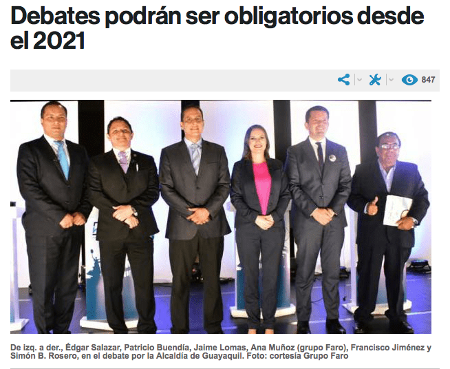 Este año, por primera vez, se realizaron debates a nivel de Alcaldías entre los aspirantes a los cabildos de las tres ciudades más pobladas del país: Quito, Guayaquil y Cuenca organizados por Ecuador Decide una iniciativa de Grupo FARO